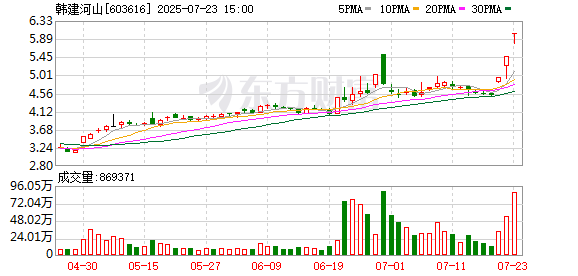 韩建河山(603616)今日涨停,全天换手率22.80%,成交额5.19亿元,振幅4.34%。龙虎榜数据显示,营业部席位合计净卖出642.55万元。