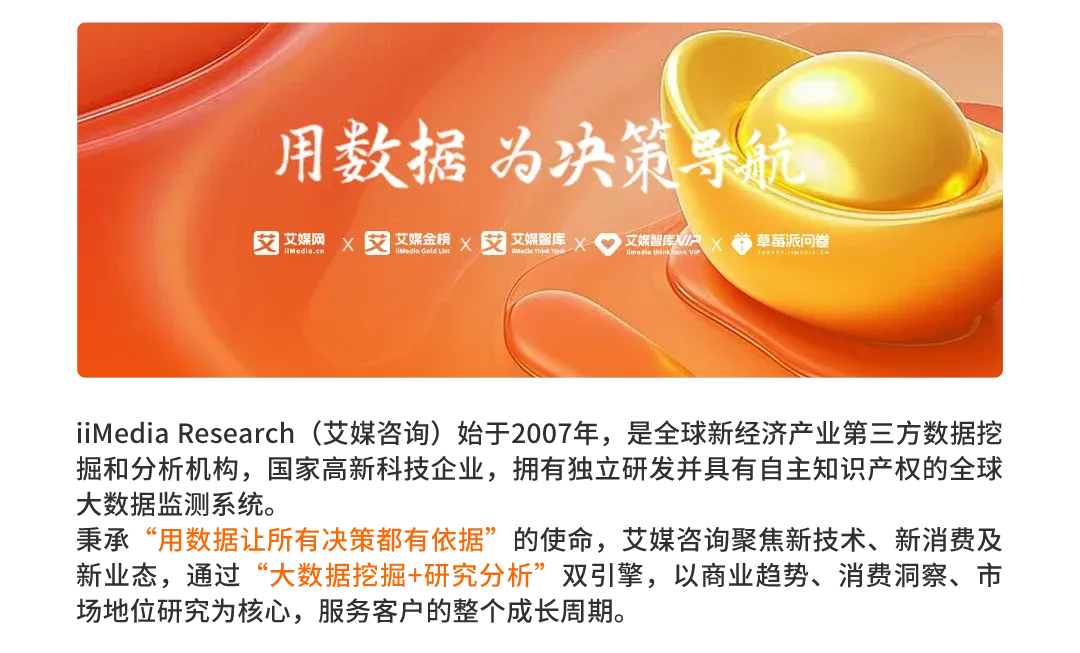 艾媒咨询通过深度大数据挖掘与分析,输出有数据、有观点、有理论支撑的大数据研究成果,每年公开或定制发布新经济前沿报告超过2000份,覆盖了食品、饮品、餐饮、家电、家装、汽车、鞋服、医药、美妆、宠物、母婴、信创、数娱、金融等行业及国潮经济、跨境电商、夜间经济、冰雪经济、低空经济、商业航天、人工智能、智能制造等新质生产力业态。艾媒咨询的数据报告、榜单、分析师观点平均每天被超过100家全球主流媒体、1500家(个)自媒体与行业KOL引用,覆盖语言类型包括中、英、日、法、意、德、俄、阿约二十种主流官方版本。