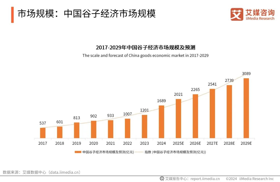 iiMedia Research(艾媒咨询)数据显示,2024年中国谷子经济市场规模达1689亿元,较2023年增长40.63%,预计到2029年市场规模将超过3000亿元。潮玩正成为吸引Z世代、重构商圈消费结构的核心力量。